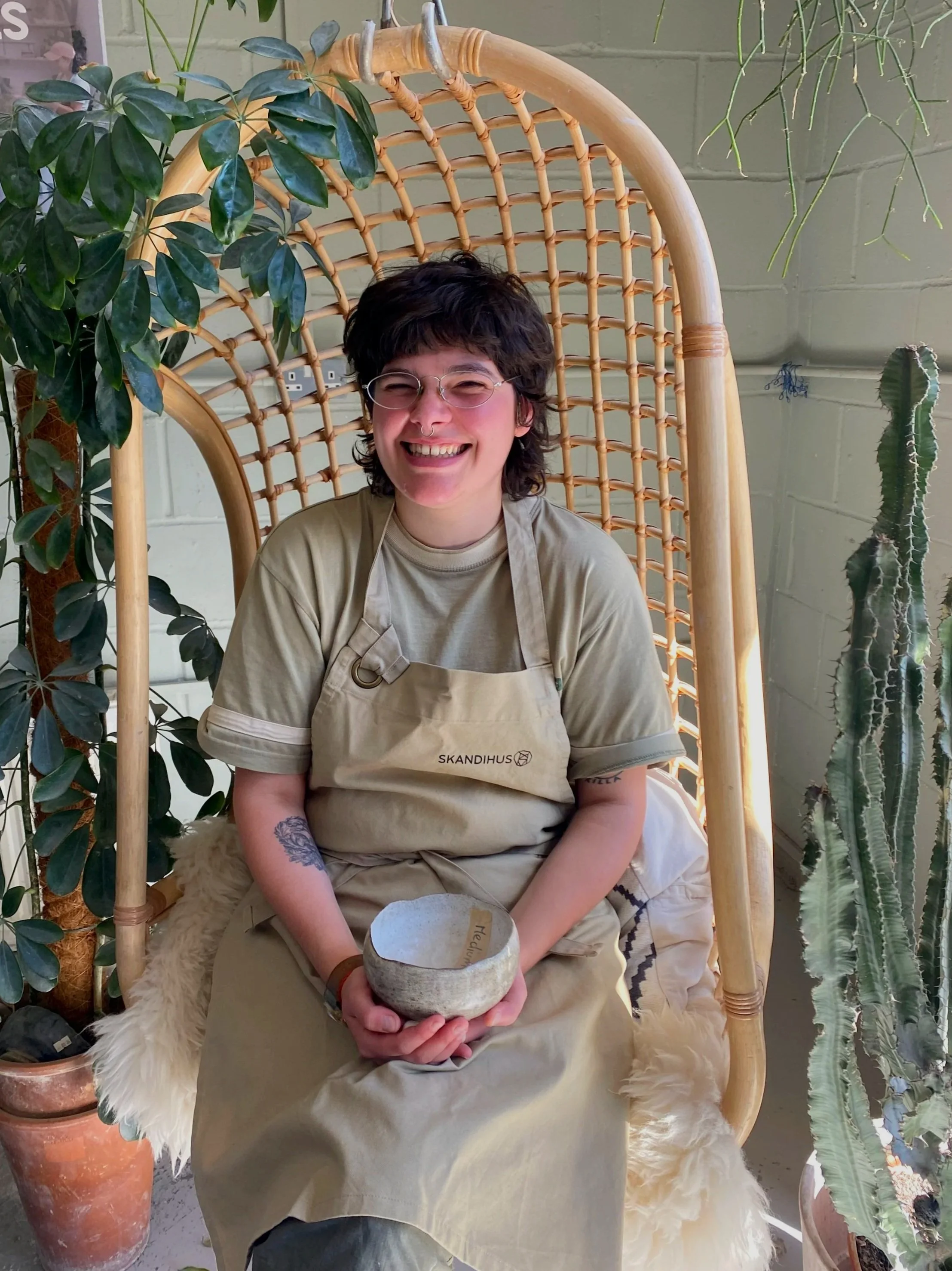Cristina began teaching three years ago in Bristol, where she developed a calm and encouraging approach. Since then, she has worked across studios in Bristol and London, supporting both students and studio spaces. She feels grateful to share the magic of clay with others here at SkandiHus.